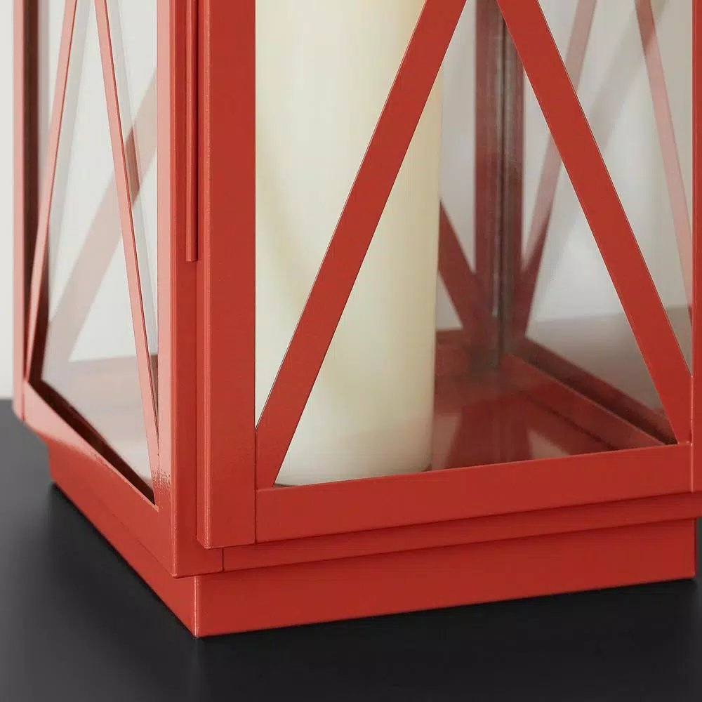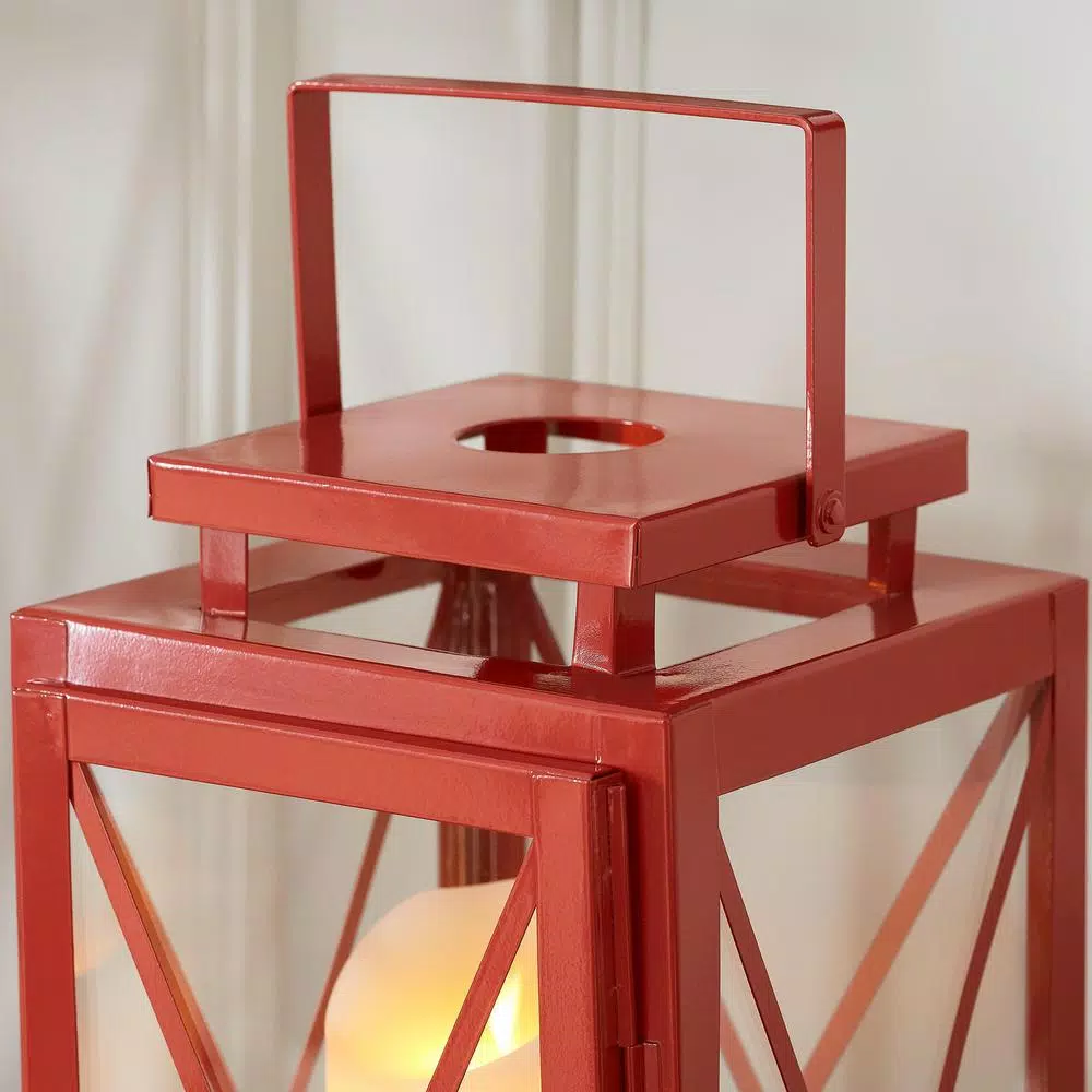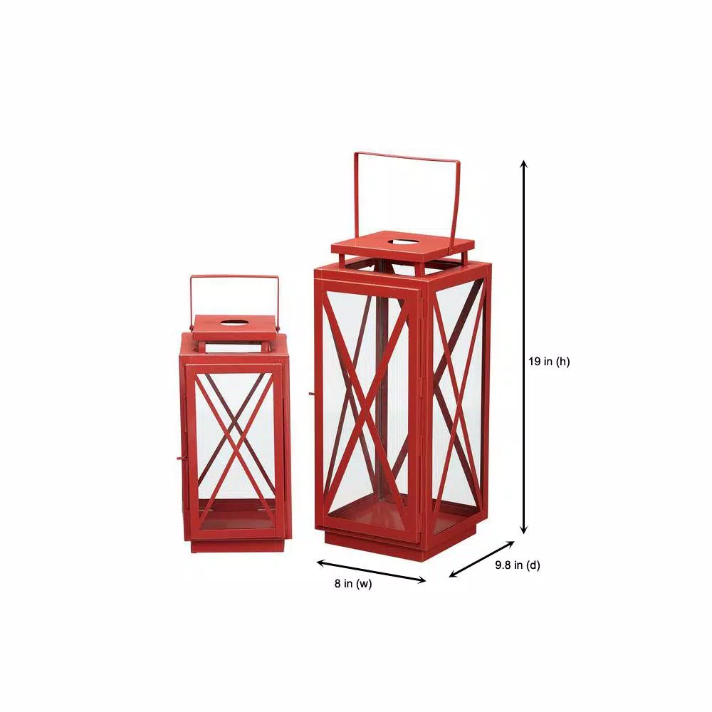 Brighten up your living space with the Chili Red Metal Candle Hanging or Tabletop Lantern (Set of 2) from Home Decorators Collection. Handcrafted from engineered wood and glass, these lanterns feature hinged doors for easy placement of flameless candles. With its X-design detail and metal handles, these red lanterns with chili finish are sure to add a vintage charm to your room. Place them on a tabletop as a centerpiece, or suspend them from the ceiling, the antique lanterns make for an ideal lighting accessory for your home.