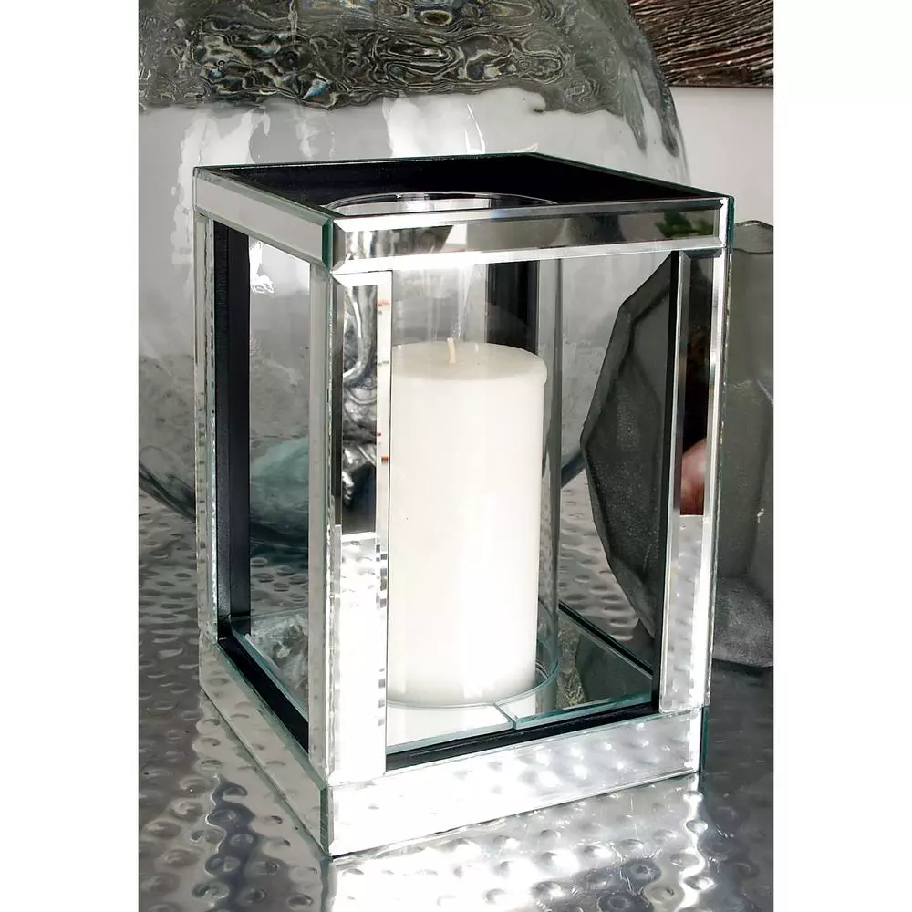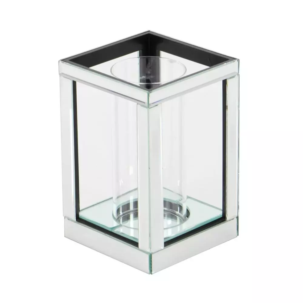 This single candle holder is designed with a simple rectangular frame with beveled mirror edges and MDF core, with a flat rectangular base for stability. The clear glass cylindrical shade of this candle holder protects a lighted candles from drafts. The polished silver finish of this candle holder adds a smooth and elegant look that suits modern-inspired homes and living spaces.