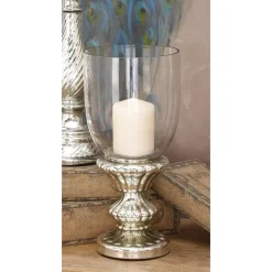 - Features a clear cup-style hurricane glass candle holder