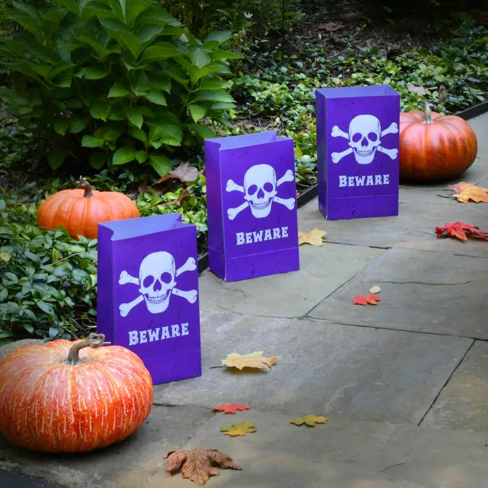 Welcome trick or treaters and party guests with decorative traditional plastic walkway luminarias. They brighten up your walkway, driveway, sidewalk, staircase or entryway for Halloween. Just add a LumaBase water filled candleholder or sand for weight and a battery operated light. They add a decorative flair, while lighting the way for guests.