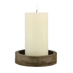 The rustic wood and metal candle tray is 11.75 in. in diameter and is multi-functional. Use it as a beautiful display for your favorite group of candles or you can use it as a “catch all” in your office. The possibilities are endless.