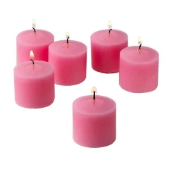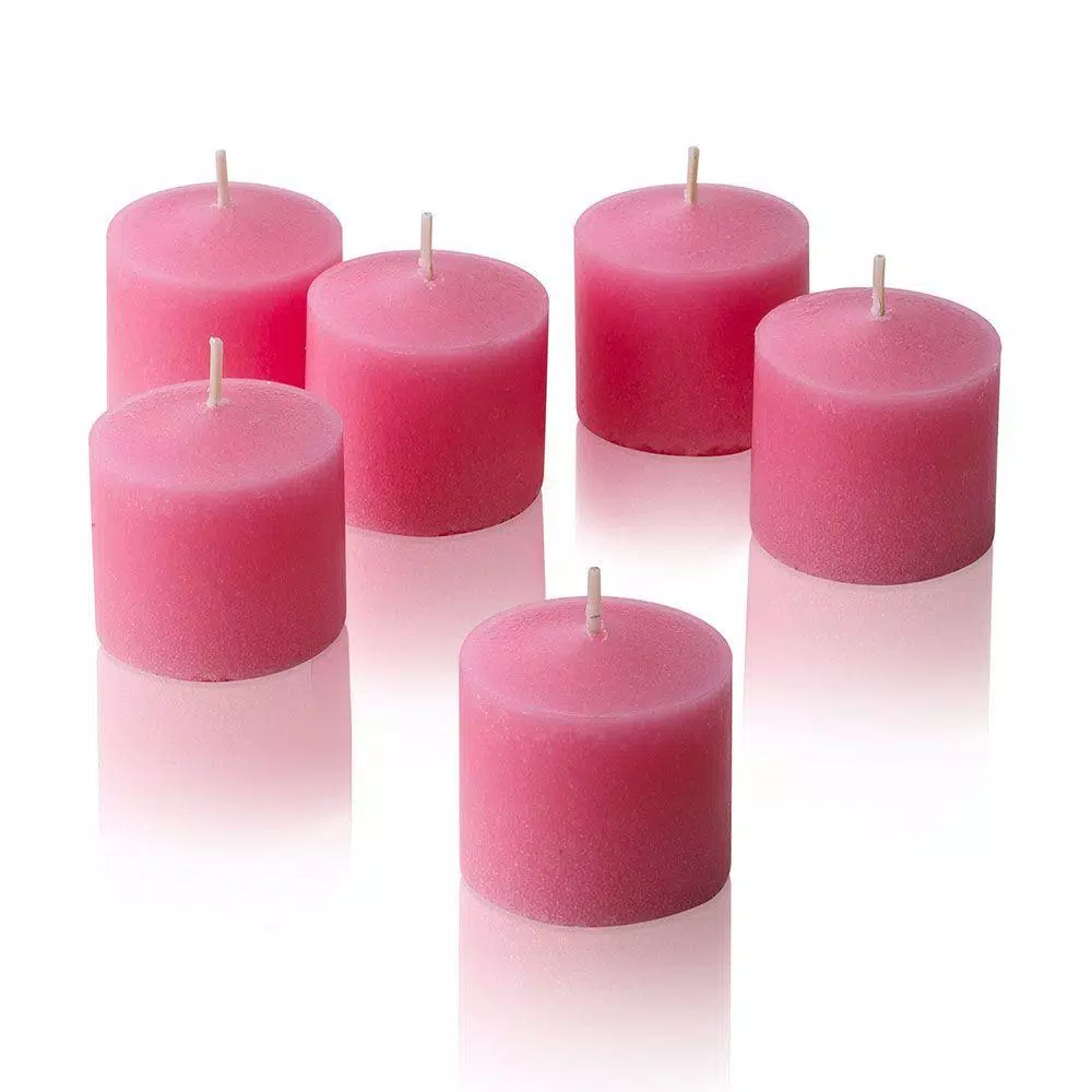 Set of 72 Pink Rose Garden Scented Votive Candles, Very Popular, Classic, Clean, Set of 72 Pink Rose Garden Scented Votive Candles. This Votive Candles with 10 Hour burn time each, Scented Votive Candles are very popular for home use, whether it may be arranged around the tub or Jacuzzi, or at patio and pool gatherings, these same candles are purchased for use in some of the finest stores. The candles are 1.5 in. in diameter and 1.1/4 in. tall. They are professionally packed to arrive quickly and undamaged.