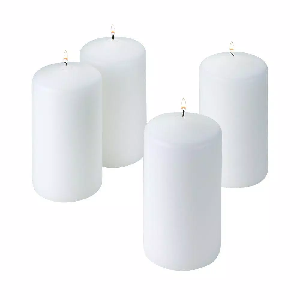 - White pillar candle 6 in. tall x 3 in. wide unscented set of 4