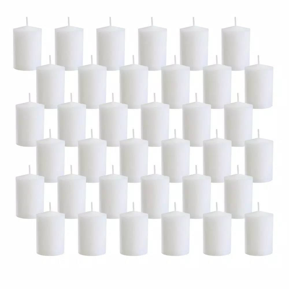 Illuminate a party or event by bringing twinkling light with this set of 36 votive candles. These lovely white unscented candles are made from the highest quality wax for a clean 15 hour burn. These simple candles will add a touch of elegance to your special event. Use in candleholder (not included)