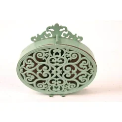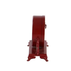 LITTON LANE 7 In. X 7 In. Burgundy Red And Mint Green Round Table Clocks On Rectangular Scrollwork-Designed Base (Set Of 2)