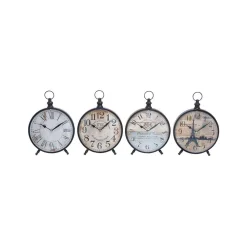 LITTON LANE 12 In. X 9 In. Vintage-Style Black Round Peg-Legged Table Clocks (Set Of 4)