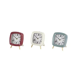 LITTON LANE Square Mauve, White And Blue Metal Table Clocks With Retractable Stands And Gold Feet (Set Of 3)