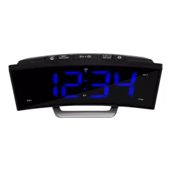 Table Clocks La Crosse Technology 1.8 In. Curved Blue LED Atomic Dual Alarm Clock