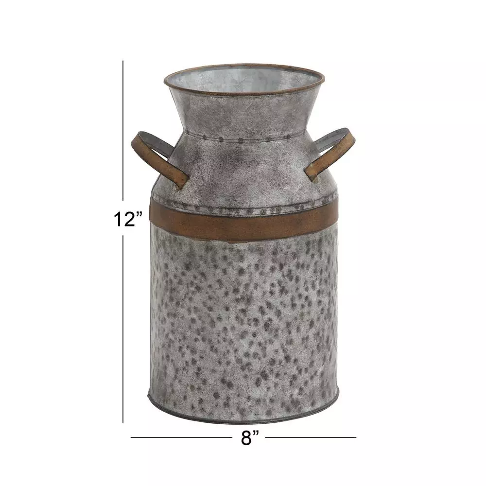 - 12 Inch Rustic Galvanized Metal Milk Can