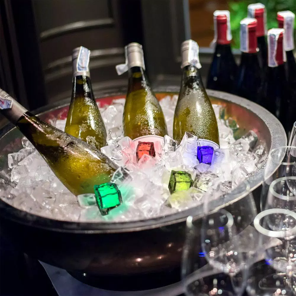 Create effortless ambiance at your next event with the Ice Cube Shaped LED Lights (12-Pack) by Lavish Home. With an automatic color change sequence of purple, blue, red, green, yellow, and white, these liquid activated lights will add a magical glow to your drinks, punch bowl, cooler, pool, tub, aquarium, fountain, pond or centerpiece vases. These versatile waterproof lights are submersible in liquid and are made of food grade plastic, making them safe to use with food and drinks. The battery powered underwater LED lights are energy efficient, providing up to 50,000 hours of illumination.