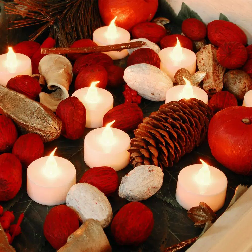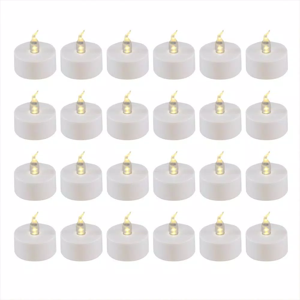 This set of 24 battery operated LED tea light candles illuminate a warm white glow without the danger of a real flame. They are a safe and easy alternative to traditional candle light. Use in a candleholder or stand alone for special events, parties or any occasion.