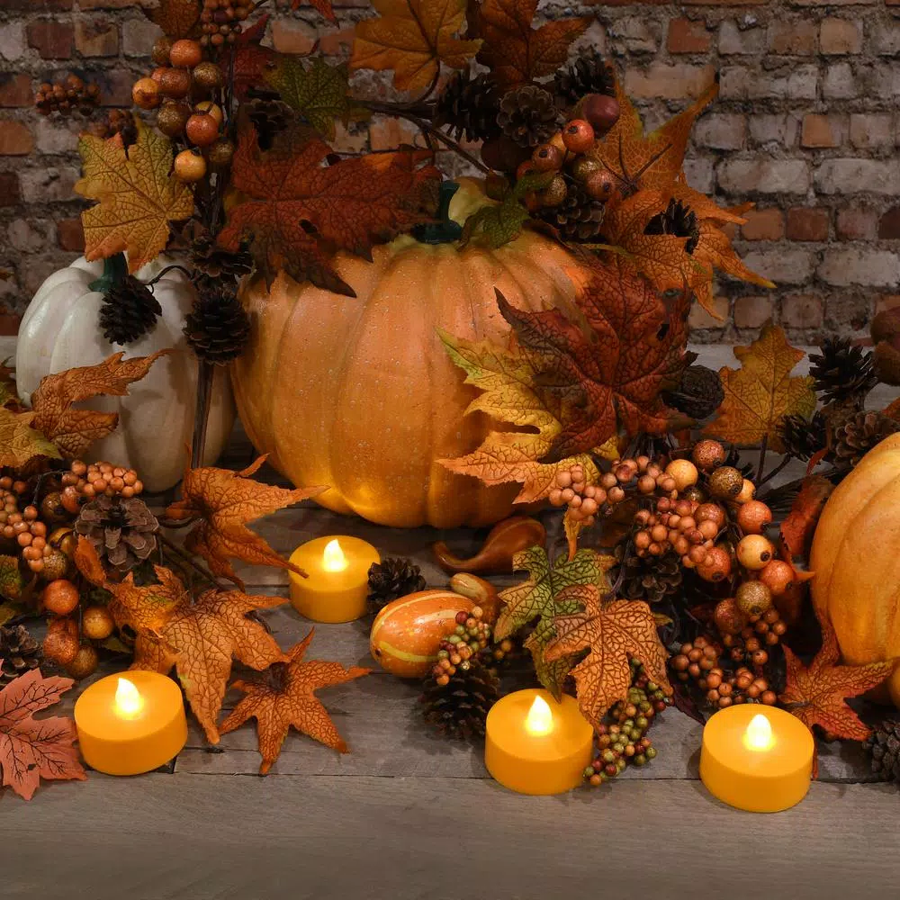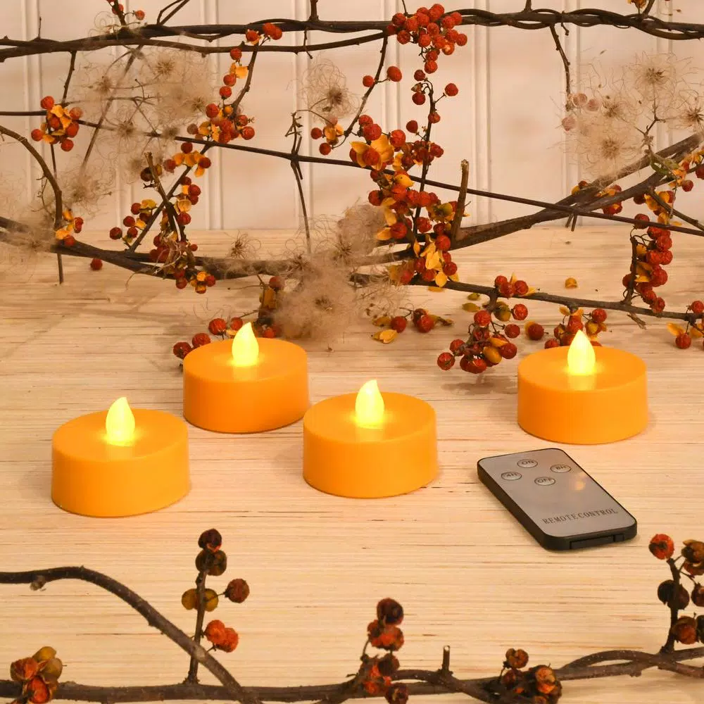 - Included: 4 Orange Extra Large LED Tea Lights with a Remote Control and 2 Timers