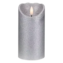 Add this battery-operated candle to your holiday decor. The candle is silver embellished with glitter features a melted edge design looks like a real candle that flickers with 3D lighting. You can Place them inside lanterns for a modern twist on classic style or use them with wall sconces to create dramatic accent pieces this Christmas. Features: Flameless Candle. Silver and embellished in glitter with a white tip. The candle glows warm white. Features an uneven oval top like melted wax. There is an on/off switch at the bottom. A battery insert is on the bottom (AA) batteries are not included. Feels like real wax. For indoor use only. Dimensions: 6″H X 3″W. Materials: plastic