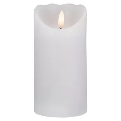 Add this battery-operated candle to your holiday decor. The candle is white in color with a melted edge design looks like a real candle that flickers with 3D lighting. You can Place them inside lanterns for a modern twist on classic style or use them with wall sconces to create dramatic accent pieces this Christmas. Features: Flameless Candle. White in color with a white tip. The candle glows warm white. Features an uneven oval top like melted wax. There is an on/off switch at the bottom. A battery insert is on the bottom (AA) batteries are not included. Feels like real wax. For indoor use only. Dimensions: 6″H X 3″W. Materials: plastic