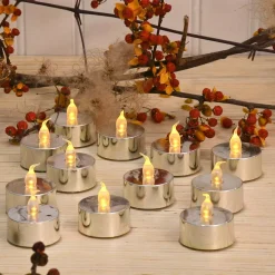 Flameless Candles LUMABASE Battery Operated Silver Plated LED Tea Lights (12-Count)
