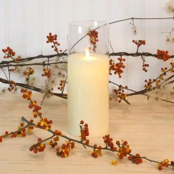 Flameless Candles LUMABASE Battery Operated 8 In. Glass Hurricane Candle With Moving Flame