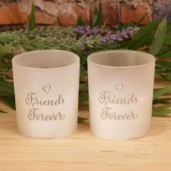 Flameless Candles LUMABASE Battery Operated Glass LED Candles – Friends Forever (Set Of 2)