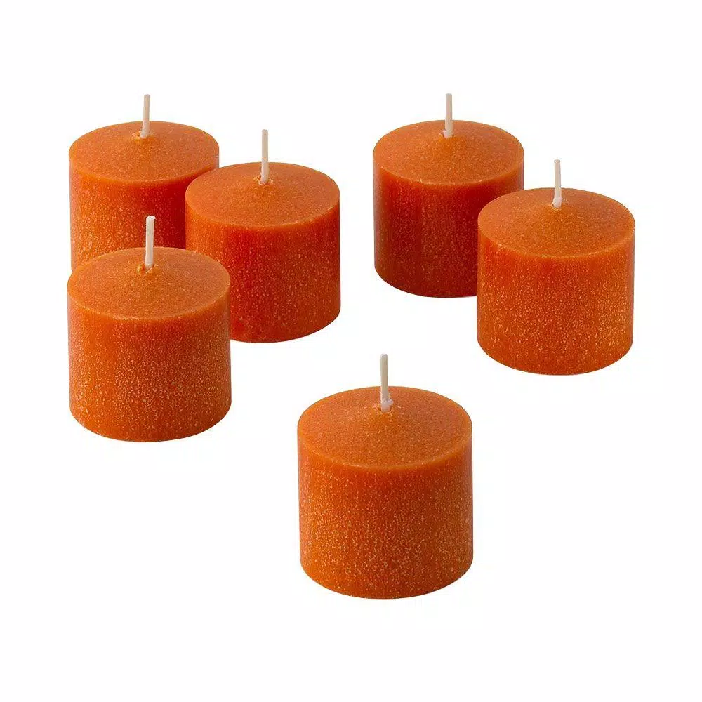 Set of 36 Orange unscented Votive Candles, Very Popular, Classic, Clean, Set of 36 Orange unscented Votive Candles. This Votive Candles with 10 Hour burn time each, Unscented Votive Candles are very popular for home use, whether it may be arranged around the tub or Jacuzzi, or at patio and pool gatherings. The candles are 1.5 in. in diameter and 1.1/4 in. H. They are professionally packed to arrive quickly and undamaged.