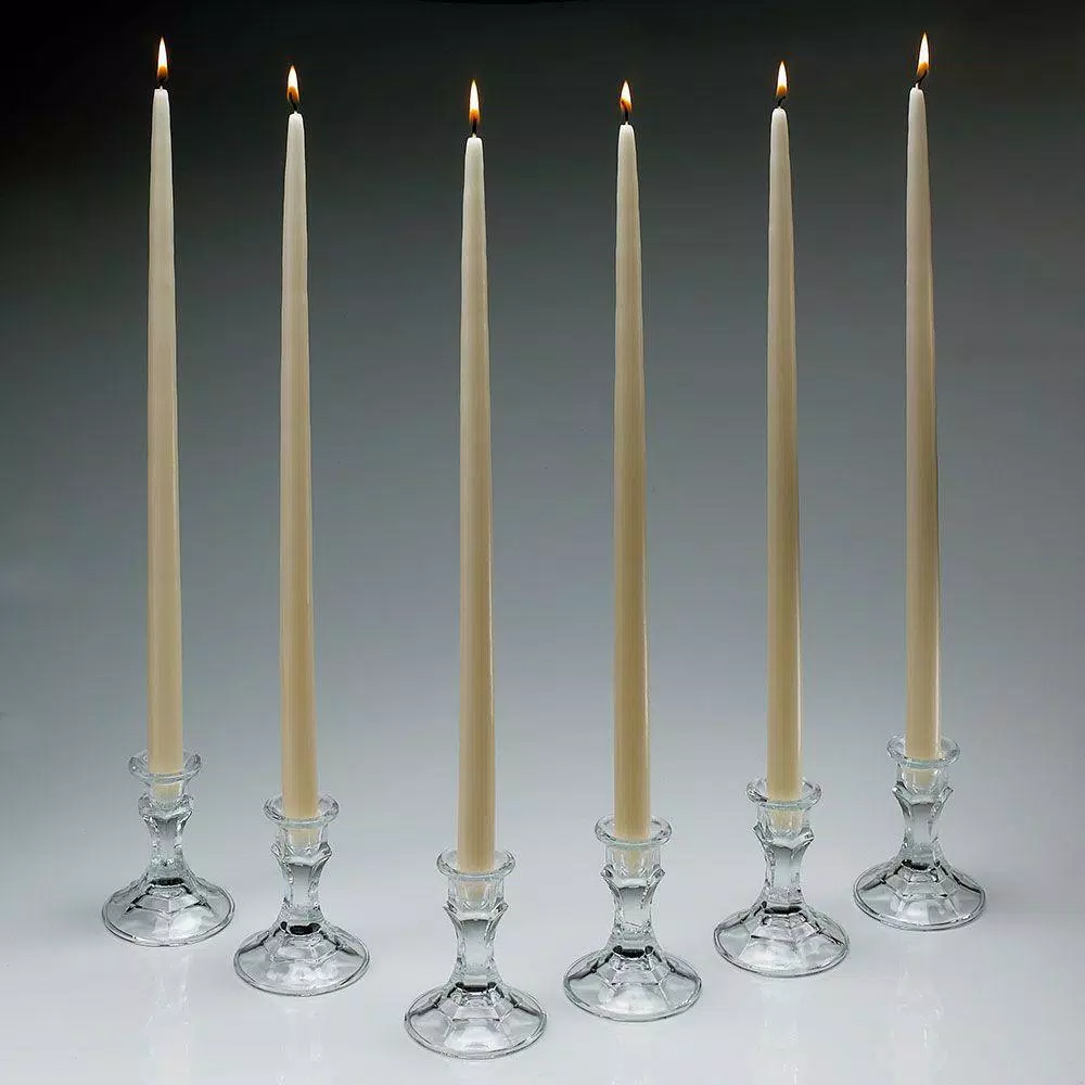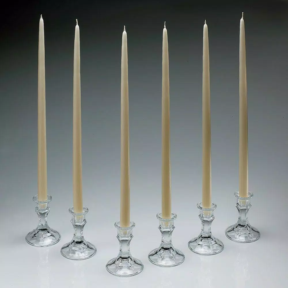 12 Ivory Taper Candles 18 in. Great For The Holiday’s and for weeding and For All Year Round occasion, Ivory Taper candle 18 in. Set of 12 From Shop A Candle. Quality Products and Quick Shipping. Taper Candles add elegance and sophistication to any formal event. Whether it be at a wedding, a reception table or just for a romantic candlelit dinner for that special someone, Taper Candles provide just the right amount of textured lighting for a dramatic presentation. Taper Candles make the perfect tabletop light for upscale restaurants and parties. Our Taper Candles are hand-dipped,” drip less” and “clean burning”. These Taper Candles have 100% lead free wicks and fit into any standard Taper Candle holder. Size: 18 in. Tall and 1 in. Thick.