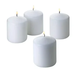 - 4 white pillar candles 3 in. x 3 in. unscented, burn time 50 hours