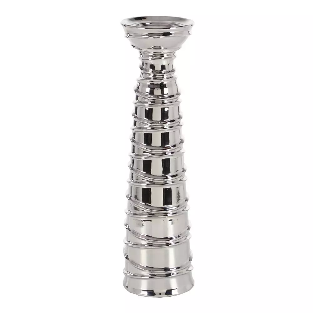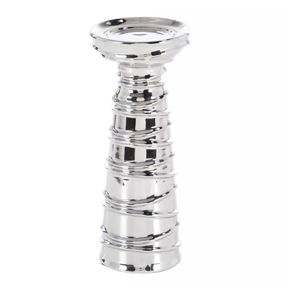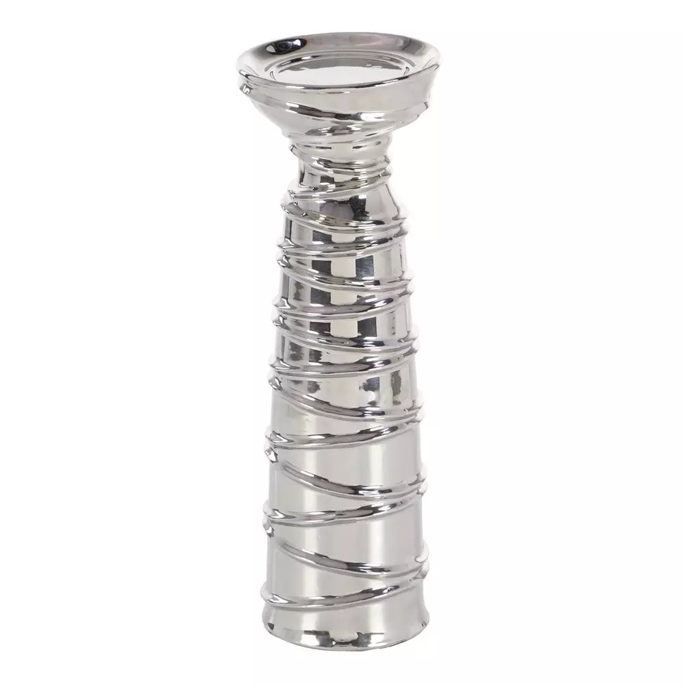 - Set of 3 Contemporary 12, 15 and 19 Inch Silver Ceramic Candle Holders with Spiral Band Designs