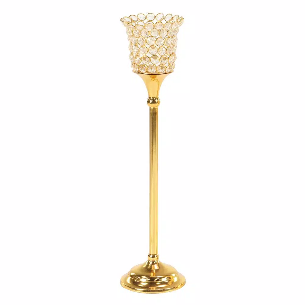 This set of three lovely candle holders will bring timeless elegance to your table setting. Each candle holder highlights a beaded flared shade attached to an aluminum-made frame and cone-shaped base. The bead accents add personality to the candle holders while the gold frame finish brings vibrance and sophistication.