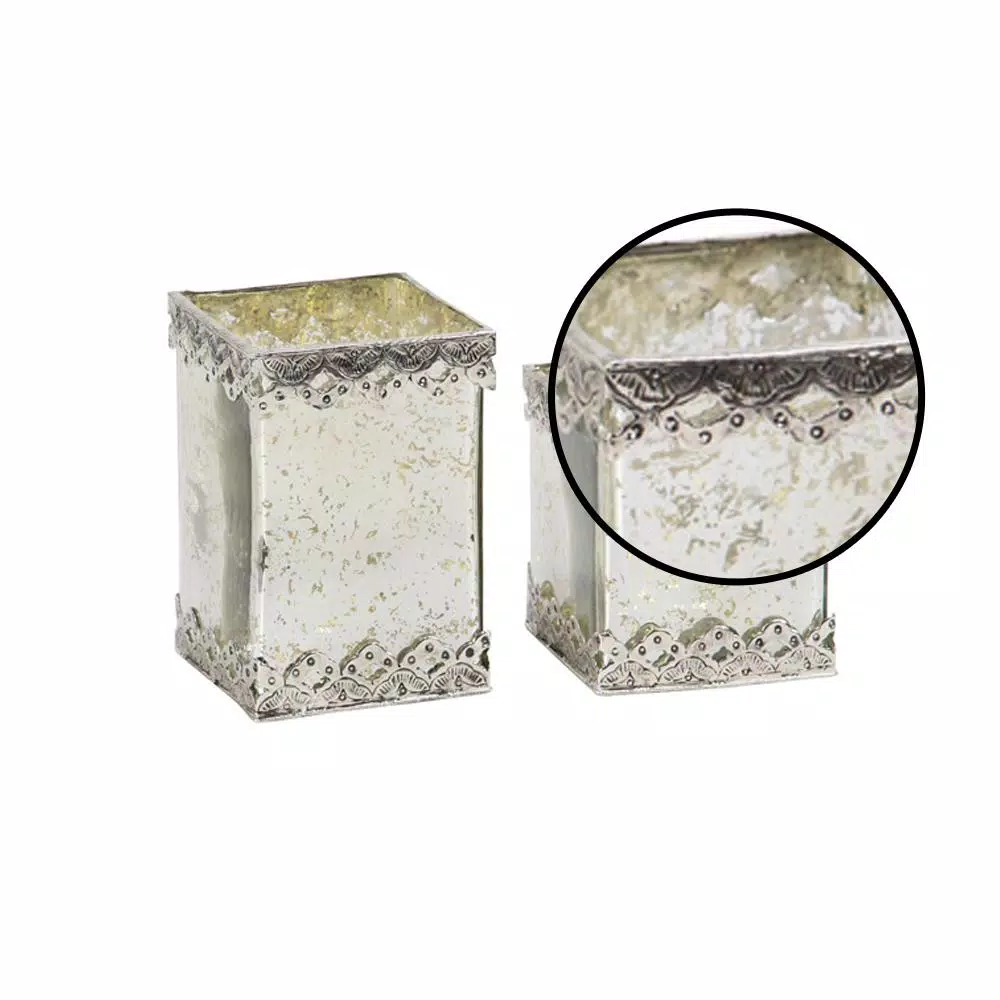 - Set of 2 rustic 6 and 8 inch cuboid glass candle holders