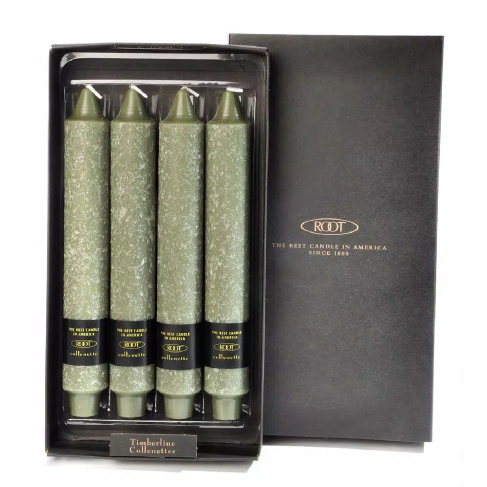 ROOT CANDLES 9 In. Timberline Collenette Dark Olive Dinner Candle (Box Of 4)