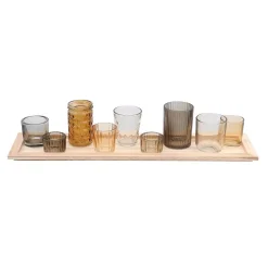 Candle Holders 3R Studios Orange And Brown Wooden Tray Candle Holder