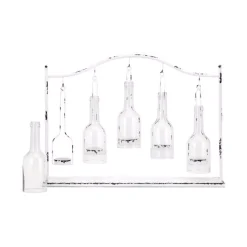Candle Holders LITTON LANE 10 In. Silver Wood And Clear Glass Candle Holder