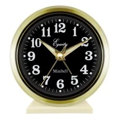 Nighttime viewing and extra loud wake up ring with this clock. Featuring bell alarm, luminated hands and no batteries needed. Key wound design clock and scratch resistant base.