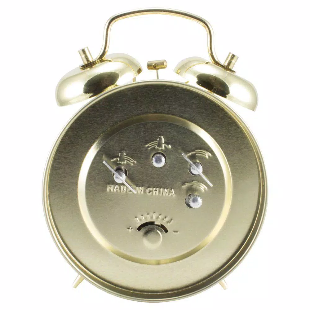 A classical bedside clock with twin bells for a loud alarm to wake even the soundest sleepers. Durable, metal framework surrounds a white dial and black metal hands. An added bonus of luminous hands and hour dots and a red secondhand to view alarm time. No batteries required.