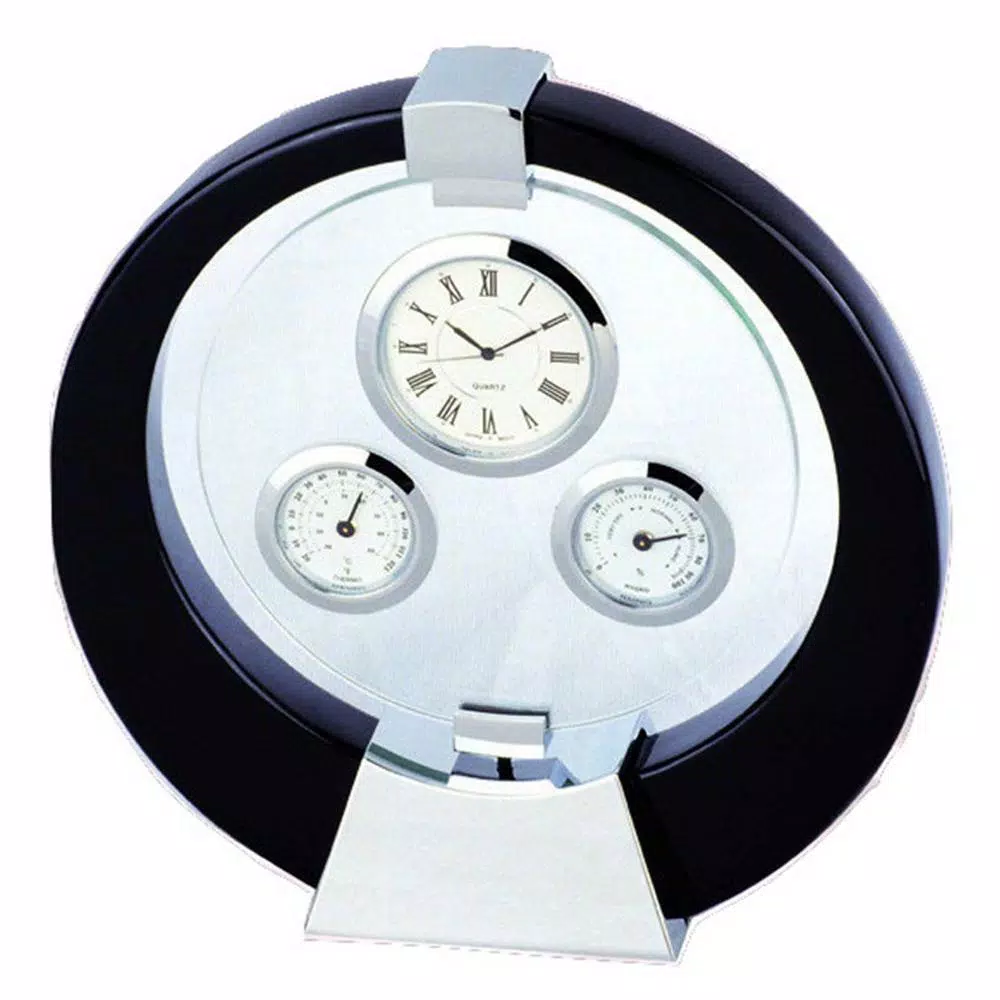 - The time and weather station desk set are made with black piano wood and silver mantle clock also includes a barometer and hygrometer