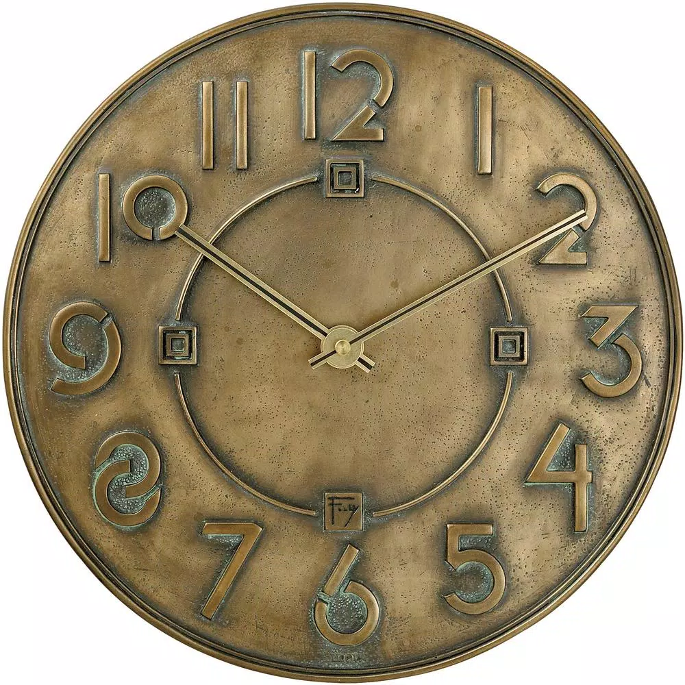From the Frank Lloyd Wright collection, this 12 in. cast resin wall clock will add fashion and style to your room. The clock is an adaptation of the Exhibition typeface developed by Wright in the 1930’s for use on a special series of exhibition drawings. You will love the finish highlights of this fabulous clock.