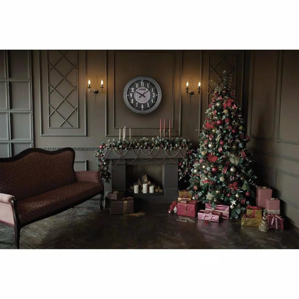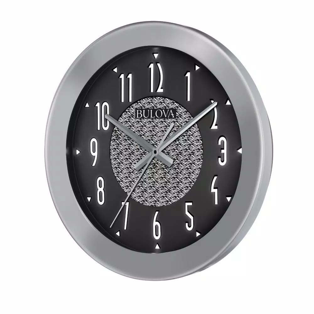 The Fantasmic is a 17 in. Bluetooth indoor/outdoor wall clock that will allow you to have music where and when you wantindoors or out. The weather and humidity resistant high-impact black molded case has matte silver-tone bezel accent. The mid-century silver-tone Arabic numerals are artistically placed on a multi-layer dial. The quiet sweep second hand gives you peace and quiet form the very functional clock . At night or in low-light conditions, the dial automatically illuminates and shuts off when ambient light returns. All-weather Bluetooth wireless speakers stream music or programing from any Bluetooth-enabled device. A universal charger is included for the removable Bluetooth system battery. Requires (1) AA battery for clock and (3) D cell batteries for lighting system, not included.