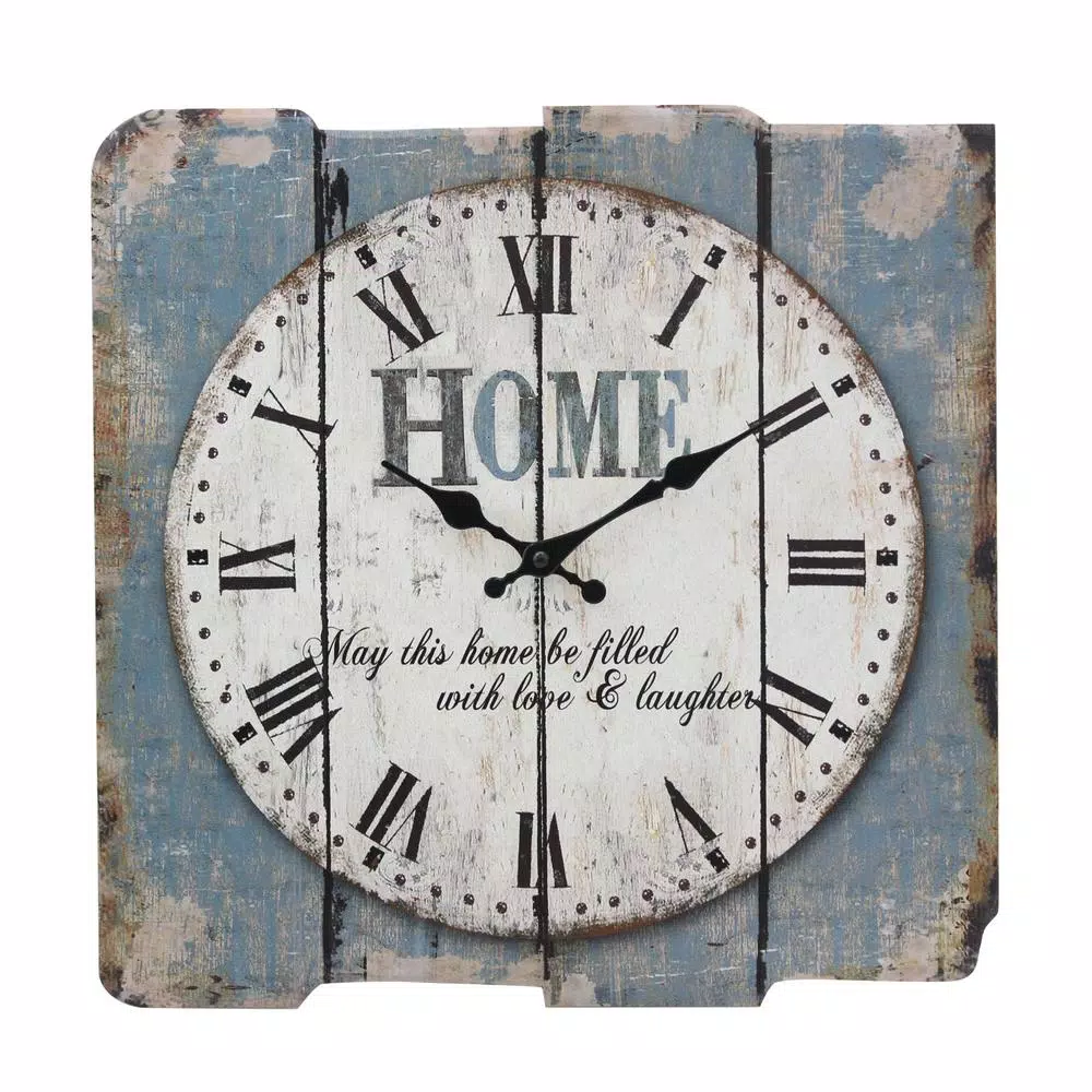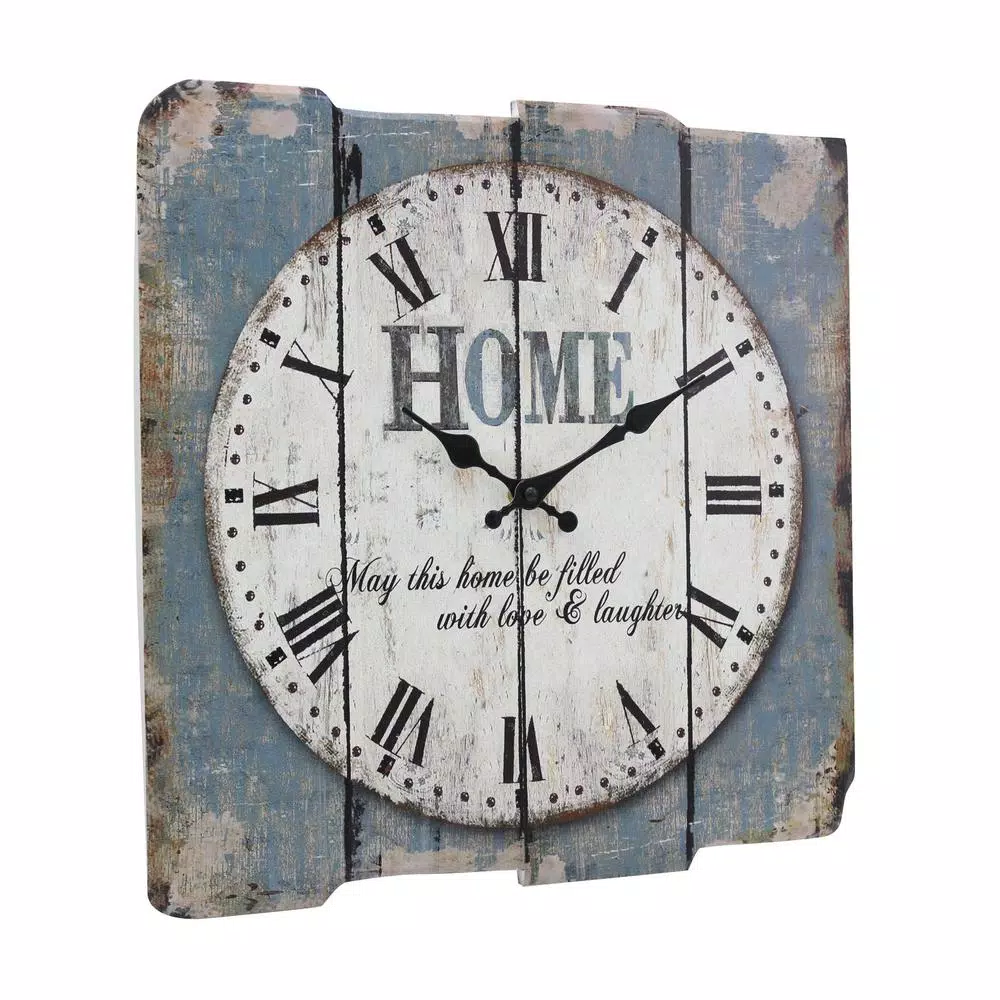 Add a bit of rustic flare to your home decor with a Stonebriar Worn Blue Roman Numeral Wall Clock. This unique clock features a vintage farmhouse design with a worn blue background and a decorative worn white clock face giving that rustic country feel. It is the perfect addition for the kitchen, living room, bedroom or any room in your home. Clock is lightweight and comes with attached keyhole hanger for easy installation right out of the box. Buy your Stonebriar Worn Blue Roman Numeral Wall Clock today and create an instant classic in your home decor.