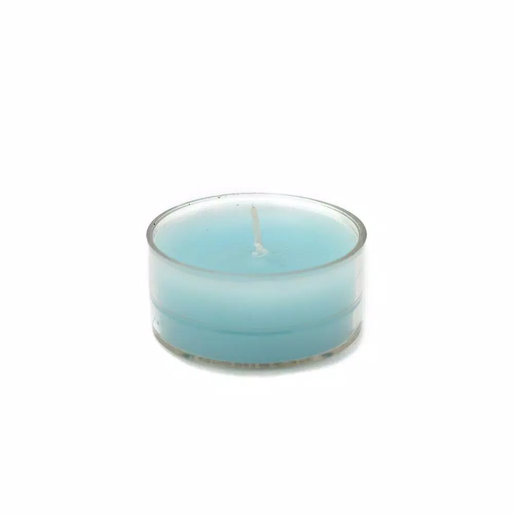 These tea light candles burn for up to 4 hours. The flame is strong and quiet. The quality in this candle shows in the glow. They come in a metal container and flat on top.